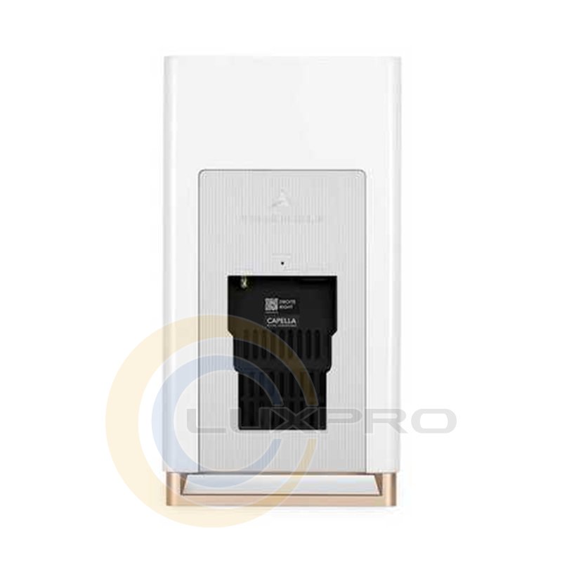 Компактний стереоконцентратор є центральною точкою Capella. Він концентрує всі входи, бездротові, інтегруючі технології Bluetooth і Wi-Fi, аналогове або цифрове дротове з'єднання. Сумісність з Airplay, Google Chromecast та Roon дозволяє легко насолоджуватися всіма вашими музичними сервісами у високій якості. Завдяки безлічі входів (TV/ARC, оптичний, USB тощо) ви також можете насолоджуватися контентом всіх ваших музичних або відеоджерел.