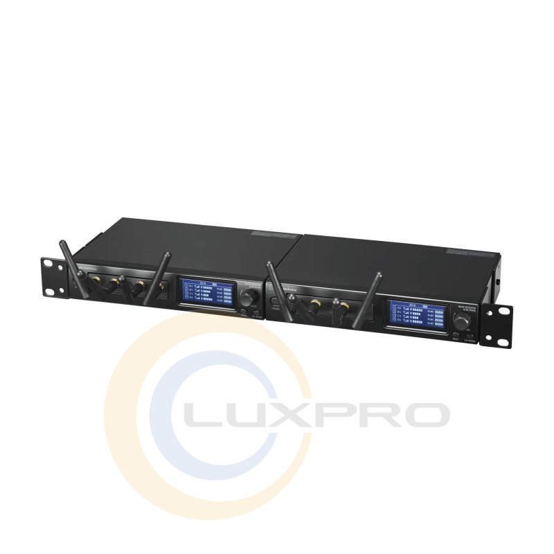 ATW-R1440 - приймач. Перемикання між режимами Standard (10 каналів) та HD (20 каналів). Приймачі можуть бути закріплені в шасі або встановлені віддалено (на відстані до 328 футів) за допомогою кабелю Ethernet для додаткової універсальності. До п'яти шасі можна з'єднати та використовувати одночасно. Відстежуйте стан передавача, рівень звуку, залишок заряду батареї та іншу інформацію у AT Wireless Manager. Функція автоматичного блокування запобігає ненавмисним операціям.