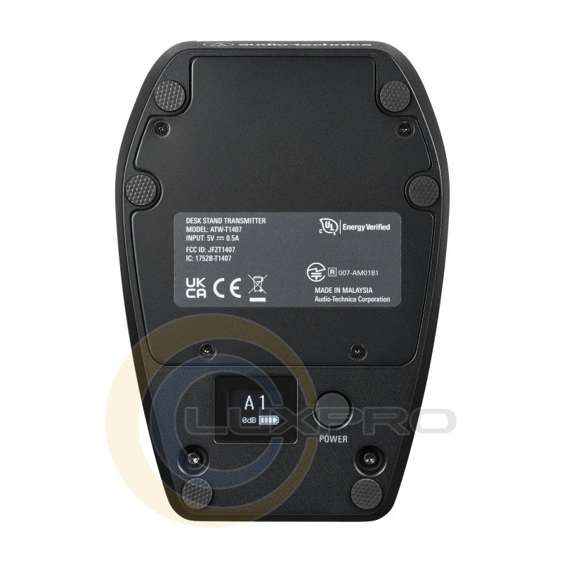 ATW-T1407 - передавач. 3-контактний мікрофонний роз'єм XLR-F на гусячій шиї (сумісний з швидкознімними мікрофонами на гусячій шиї, що окремо стоїть). Довговічні внутрішні літій-іонні акумулятори для використання передавача протягом усього дня. Вибір режиму вимкнення звуку (перемикач, сенсорне вимкнення або сенсорне вимкнення). Два варіанти світлодіодного підсвічування: стандартний режим та режим конференції. OLED дисплей. Роз'єм USB Type-C™ для заряджання (передавач можна використовувати під час заряджання).