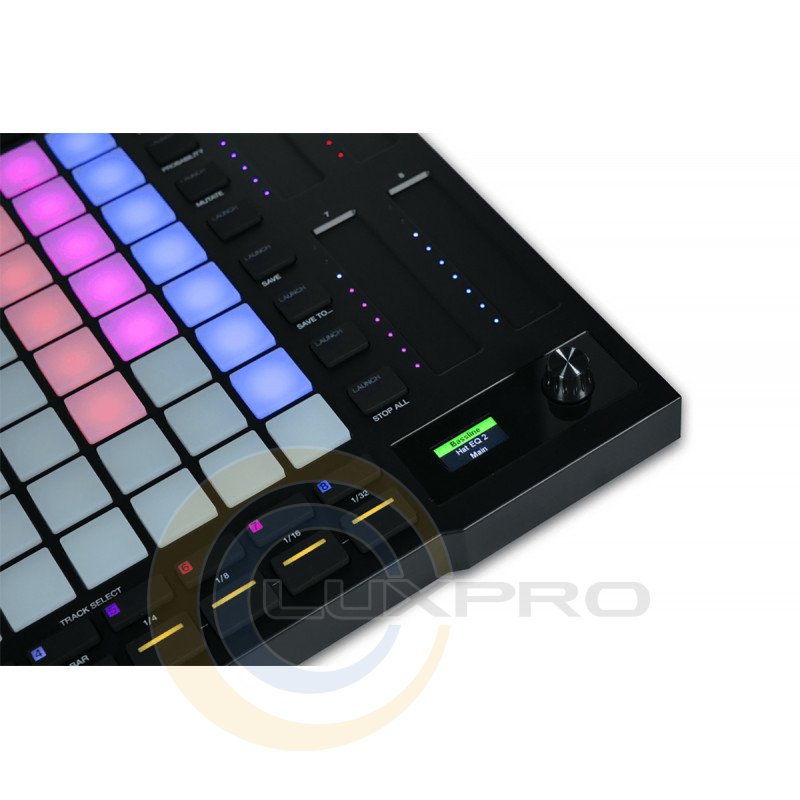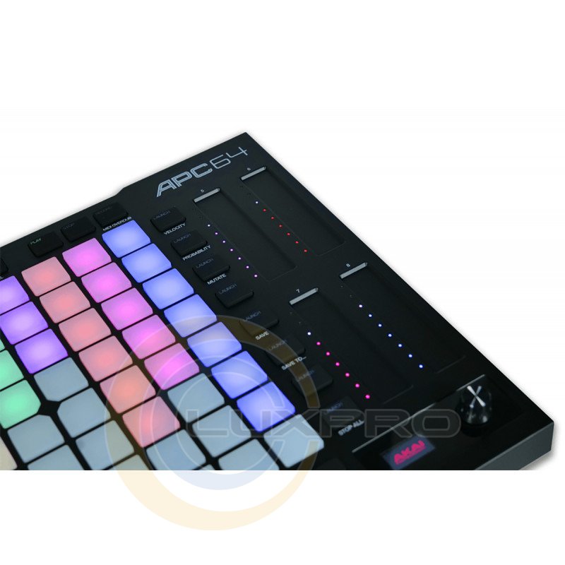 Інтелектуальний кольоровий світлодіодний екран та швидкий енкодер надають миттєвий візуальний зворотний зв'язок, спрощуючи роботу з Ableton Live. APC64 має спеціальне керування для транспортних функцій (Play, Stop, Record), а також 8 кнопок Mute та Solo треків, що робить його ідеальним інструментом для живих виступів та студійної роботи.