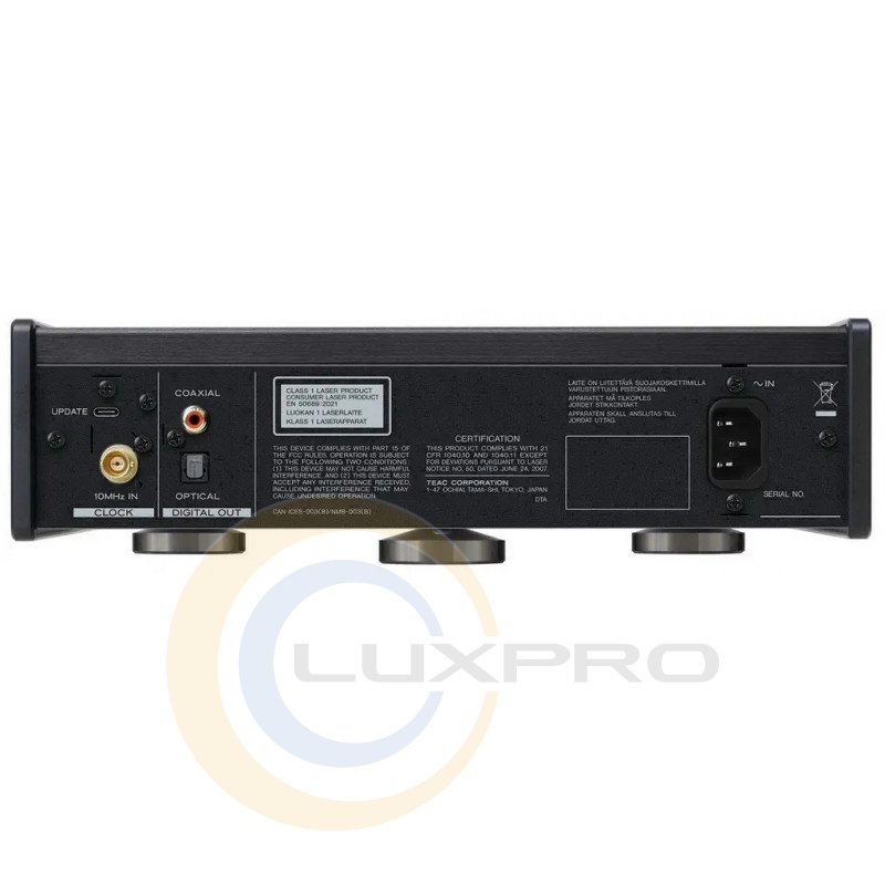 За цифрового під'єднання точність синхронізації попередніх пристроїв у тракті може вплинути на якість роботи всієї системи. Кварцовий генератор із низьким рівнем фазового шуму, що має видатні характеристики, використовується для генерації внутрішніх тактових імпульсів TEAC PD-505T. Зчитуючи сигнали з CD за допомогою прецизійних тактових імпульсів, можна точно видати в цифровим способом вихідний аудіосигнал, збережений на компакт-диску. Вхід для зовнішнього тактового сигналу з частотою 10 МГц дає змогу синхронізувати роботу з точнішим зовнішнім тактовим генератором. Крім поліпшення якості аудіо під час відтворення сигналів через TEAC PD-505T, це дає також можливість затактувати всю аудіосистему від одного генератора та підвищити якість її роботи завдяки синхронізації з ЦАП. Оскільки весь корпус TEAC PD-505T виготовлений із металевих панелей, стійких до зовнішніх шумів, пригнічується проникнення електромагнітних перешкод, генерованих комп'ютерами та іншими пристроями. Це забезпечує чистоту внутрішнього середовища за мінімального рівня перешкод навіть у складних для аудіообладнання умовах. Крім того, алюмінієві панелі завтовшки 8 мм, які покривають обидві сторони суцільнометалевого корпусу, забезпечують йому необхідну міцність і точну форму. Крім того, цей пристрій розміром із сторінку формату А4 (якщо дивитися зверху) можна легко розмістити на письмовому столі, тумбочці або в іншому невеликому просторі.