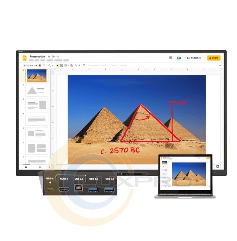 Інтерактивна LED панель SMART Board SBID-GX175-V3 виготовлена на основі світлодіодних мультисенсорних Ultra-HD дисплеїв. Дозвіл такого монітора складає 4К Ultra-High Denition. Зображення чітке і яскраве, а завдяки покриття антивідблиску сонячні промінчики ніколи не завадять Вашій роботі. У захищений дисплей розміром 75 дюймів вбудовано два динаміки потужністю по 20 Вт кожен, що забезпечує відмінний звук.