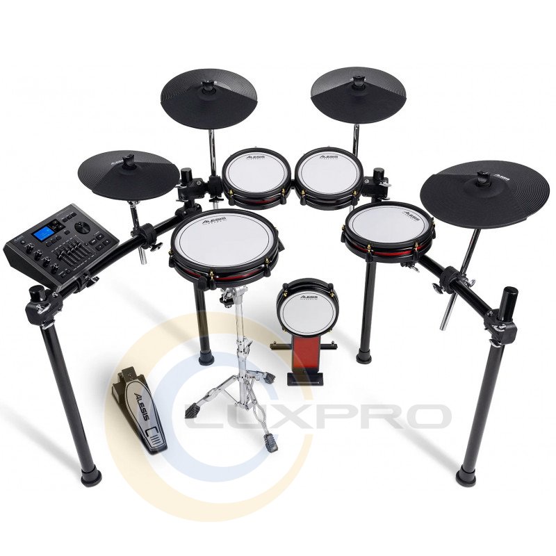 CRIMSON III KIT - ударна установка оснащена 8-дюймовим педом бас-барабана, 12-дюймовим двозонним педом малого барабана, двома 8-дюймовими двозонними педами томів і 10-дюймовим двозонним підлоговим томом (патент № US 9,424,827 B2), а також 1 управління, двома 12-дюймовими крешами з ефектом глушіння та 14-дюймовим тризонним райдом. Преміальна 4-точкова сталева річка з окремою стійкою для малого барабана надійно утримує все, незалежно від того, наскільки сильно ви граєте.