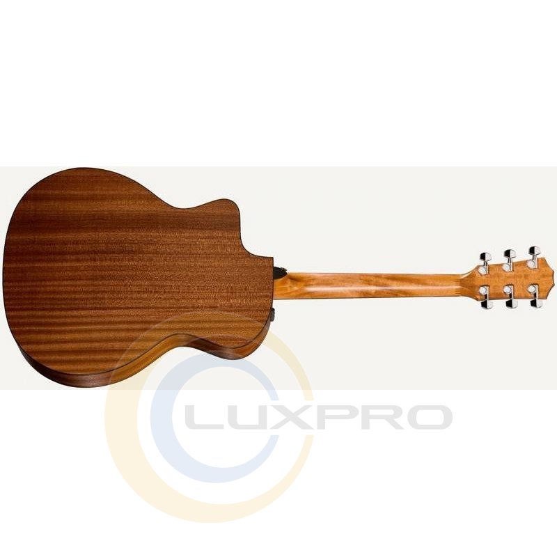 Електроакустична гітара 114CE. Нижня дека та обичайка виконані з багатошарової деревини горіха, що дає потужні середні частоти. Гриф із дерева сапеле з накладкою із чорного дерева (ебоні) інкрустованої акриловими точками діаметром 4 мм. Бридж також виконаний із дерева ебоні.