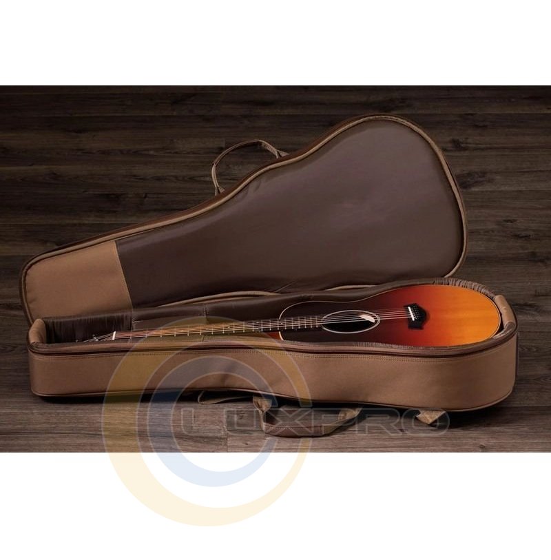 Гітара оснащена фірмовою електронікою Taylor ES-B із вбудованим тюнером, що дозволяє зручно налаштовувати інструмент та легко підключати його до підсилювача. Особливу увагу привертає градієнтне покриття Sunset Fade, яке плавно переходить від глибокого бурштинового до насиченого темного відтінку, створюючи ефект заходу сонця.