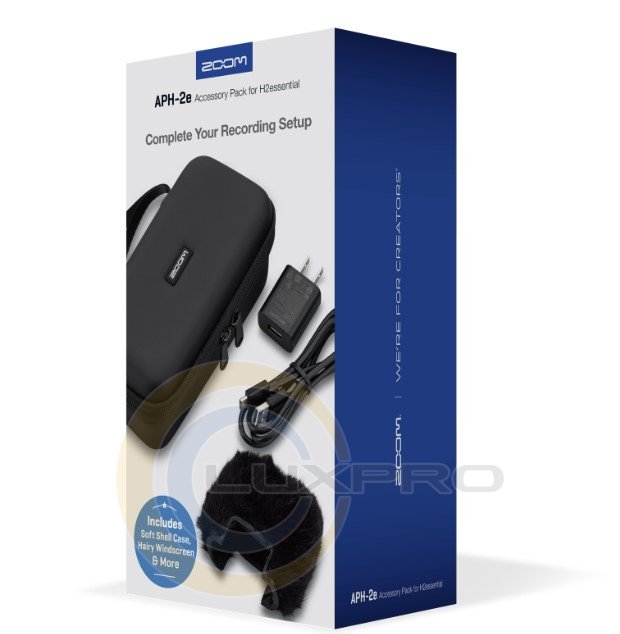 Zoom APH2e – набір аксесуарів для рекордера Zoom H2essentialНабір APH2e включає в себе всі найнеобхідніші аксесуари для вашого портативного аудіорекордера Zoom H2essential.Вітрозахист спеціального монтажуВітрозахист, спеціально розроблений для рекордера H2essential, захистить ваші записи від вітру під час запису на вулиці. Завдяки унікальному дизайну вітрозахисту, ви зможете зберегти доступ до кнопок управління, коли він встановлений на рекордері.Чохол з м’якою підкладкоюЗахистіть ваш рекордер в дорозі за допомогою м'якого чохла з підкладкою.Мережевий адаптерЖивіть ваш рекордер за допомогою мережевого адаптера AD-17e з європейською вилкою та використовуйте кабель USB-C для передачі даних і використання H2e як аудіоінтерфейсу.Комплект поставки APH2e: