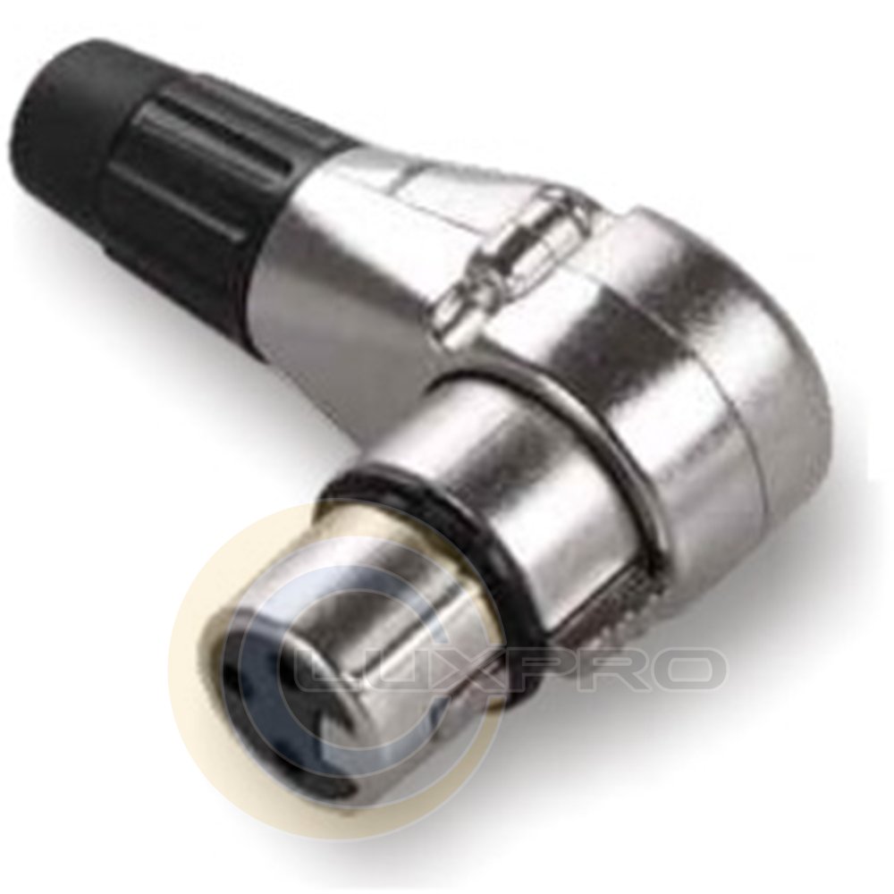 3-контактний XLR роз'єм RX087F типу "мама" виконаний в металевому нікельованому корпусі в кутовому виконанні.