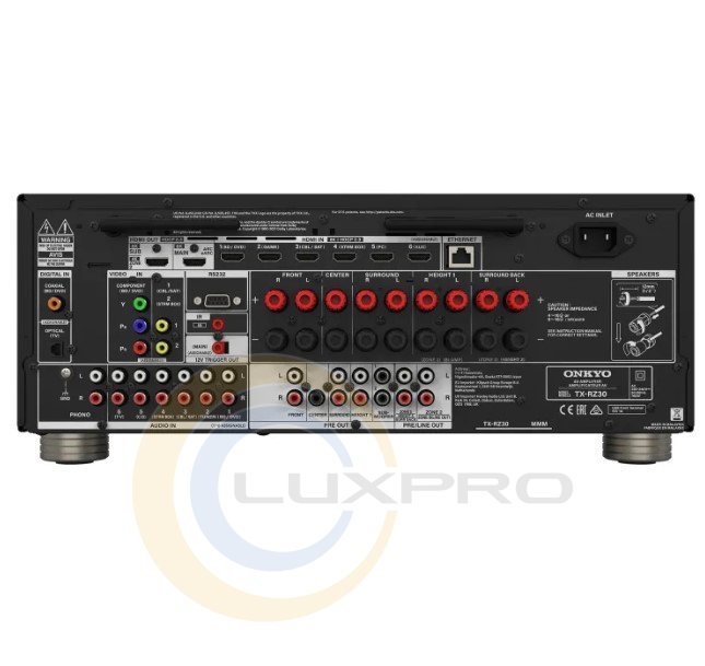 Onkyo TX-RZ30 — це молодший у топової серії моделей AV-ресиверів ONKYO, який має широкі функціональні можливості. Onkyo TX-RZ30 має 9 вбудованих каналів посилення й обладнаний декодерами всіх популярних HD і 3D звукових форматів. На базе Onkyo TX-RZ30 можна створити систему об'ємного звучання в конфігурації до 5.2.4, що забезпечить переконливе відтворення фільмів у більшості віталень.Сертифікація THX Select і IMAX Enhanced гарантує досягнення ефекту присутності в справжньому кінозалі. Звукова доріжка IMAX Enhanced використовує спеціальну «фірмову» версію аудіоформату DTS:X, яка, за твердженням IMAX, допомагає зберегти повний динамічний діапазон оригінального мікса фільму.Onkyo TX-RZ30 розвиває до 100 Вт на канал, а його підсилювачі побудовані за фірмовою технологією Dynamic Audio Amplification. У блоці живлення апарата встановлений спеціально виготовлений для нього трансформатор із підвищеним вихідним струмом і малим рівнем перешкод, а також фільтрувальні конденсатори великої ємності. Вихідні каскади встановлені на масивних радіаторах, демпфованих для унеможливлення вібрацій. Конструкція AV-ресивера зроблена так, щоб повністю усунути взаємні перешкоди між його окремими функціональними блоками.У Onkyo TX-RZ30 є шість HDMI-входів і два виходи. Основний HDMI-вихід має підтримку поворотного аудіоканалу eACR, а з додаткового сигналу може бути переданий на другу зону. HDMI-комутація підтримує передавання сигналу з роздільною здатністю до 8K. Також у моделі представлений повний набір аналогових і цифрових AV-під'єднань, зокрема і для MM-звукознімача програвача вінілу. Onkyo TX-RZ30 обладнаний 11.2-канальним виходом із процесора навколишнього звуку, що дасть змогу надалі виконати апгрейд системи.Для автоматичного налаштування звучання передбачена система калібрування Dirac Live. Також доступна як додаткова опція технологія Dirac Live Bass Control, яка швидко оптимізує настроювання вашого сабвуфера. Під'єднання до мережі відбувається через Ethernet або дводіапазонний Wi-Fi. Можна відтворювати контент із мережевих накопичувачів, через популярні онлайн-сервіси або за допомогою технології Chromecast або AirPlay 2. Onkyo TX-RZ30 сумісний із платформами Sonos і DTS Play-Fi, а також із голосовим помічником Alexa. Є в AV-ресивері та Bluetooth, що працює як на прийом, так і на передавання.Характеристики:
