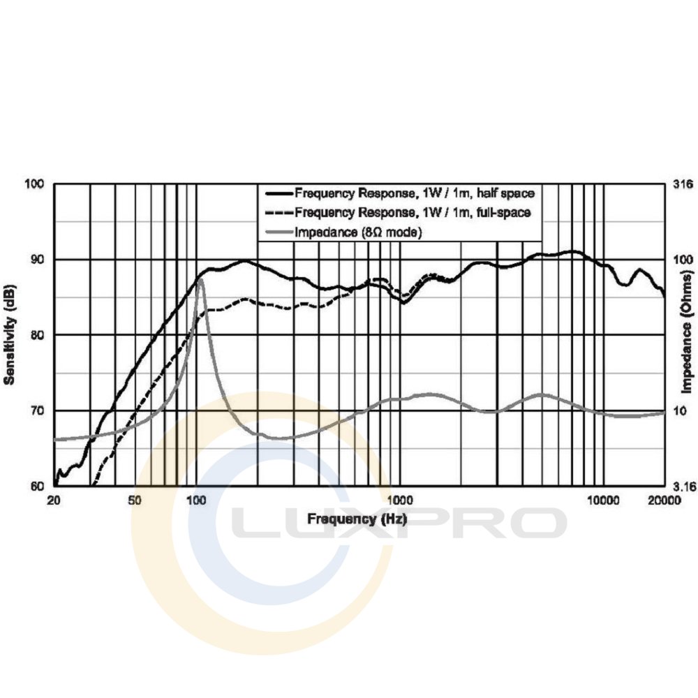 - Чутливість - 89 дБ (середня в діапазоні 100 Гц-10 кГц / 1 Вт / 1 м).