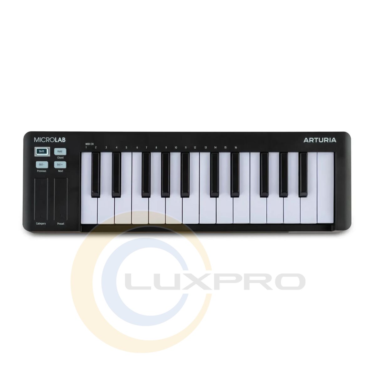 MIDI-клавіатура MicroLab mk3 (Black). Клавіатура обладнана 25 клавішами з реакцією на силу натискання. Завдяки новій низькопрофільній клавіатурі з приємною і чутливою механікою, MicroLab mk3 чудово підходить як для початківців, так і для досвідчених користувачів. Незважаючи на компактні розміри, клавіатура дарує повноцінний і якісний ігровий досвід.