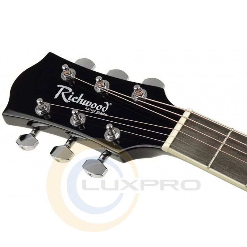 Richwood RD-12LCEBK оснащена активним звукознімачом Richwood EQ5 із вбудованим тюнером і регуляторами гучності, басів, середніх та високих частот, а також фазовим перемикачем – все це дозволяє тонко налаштовувати звук як для живих виступів, так і для студійного запису.