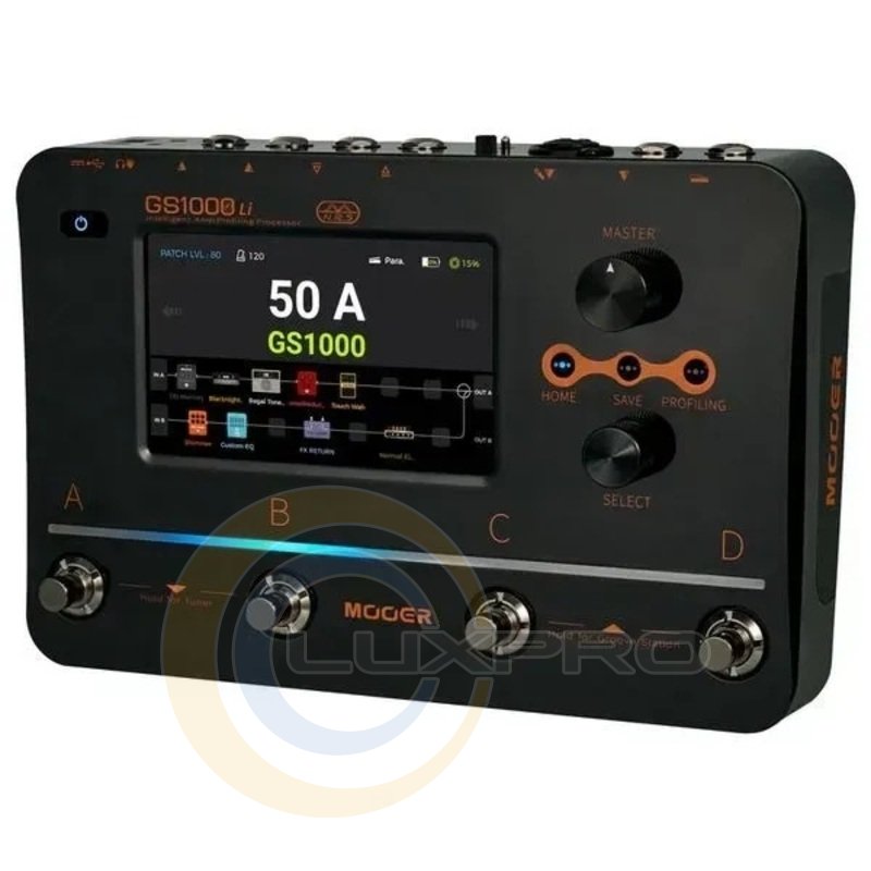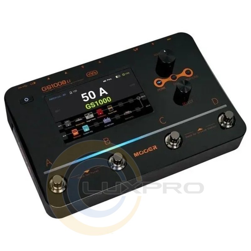 Гітарний процесор GS1000 Li. Головна відмінність версії GS1000 Li — це вбудована літієва батарея ємністю 4750 мАг, яка забезпечує до 6 годин автономної роботи. Завдяки цьому пристрій ідеально підходить для мобільного використання: від репетицій на природі до виступів на вулиці або в місцях без електромережі.