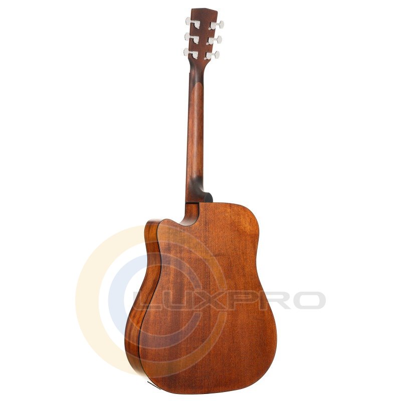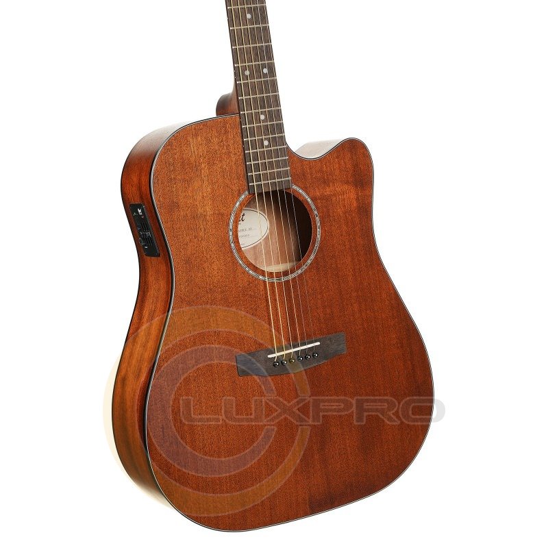 Форма корпусу дредноут зі зручним вирізом полегшує доступ до верхніх ладів, а задня дека і обичайка також виконані з червоного дерева, забезпечуючи повне, багате звучання.