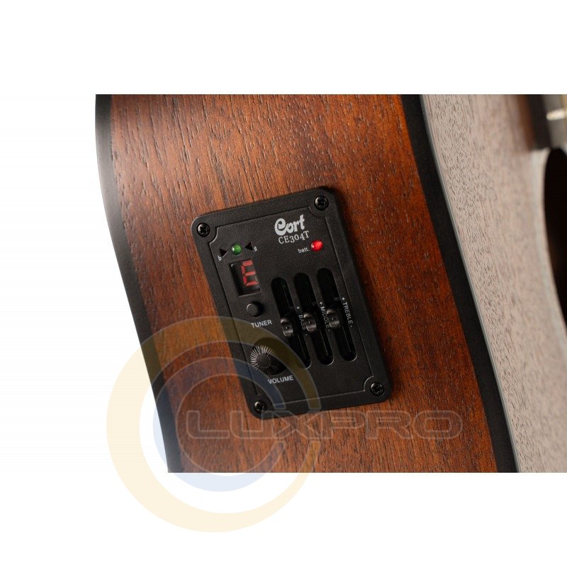 Електроніка Cort CE304T з трьохсмуговим еквалайзером і вбудованим тюнером робить Earth60MCE ідеальною для сцени, студії та репетицій.