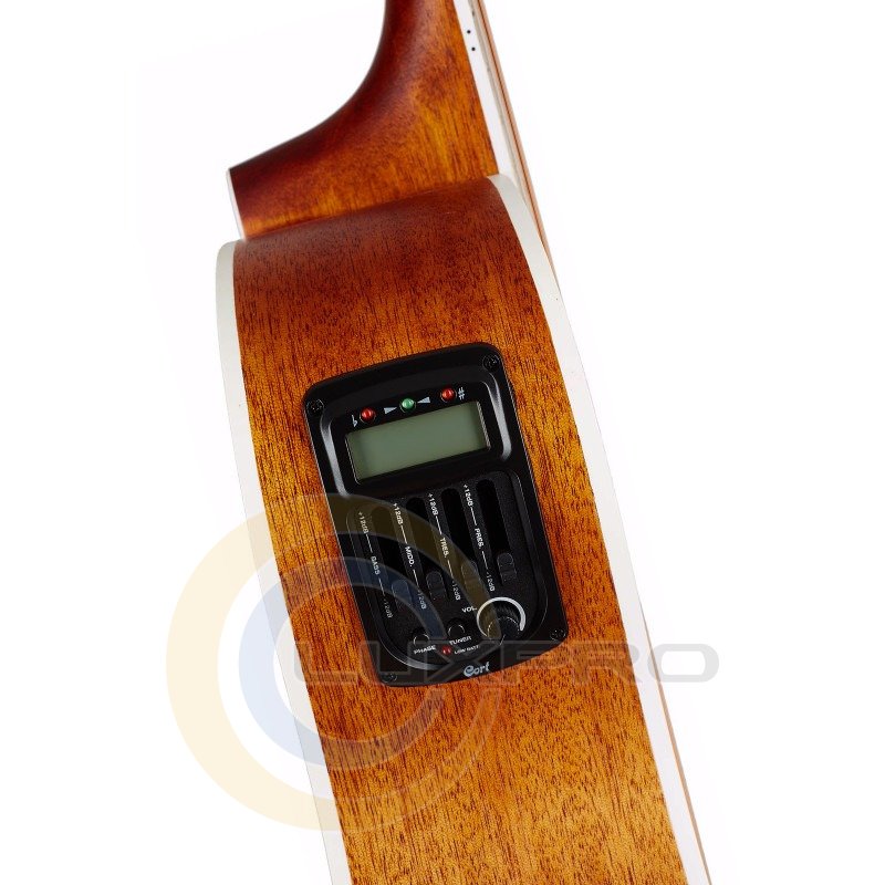 Ексклюзивний струнотримач Cort з увігнутою поверхнею помітно покращує сустейн, завдяки оптимальному куту вигину струн, водночас зменшуючи їх натяг у області грифа для комфорту при грі.Звукознімач та преамп Cort CE306T