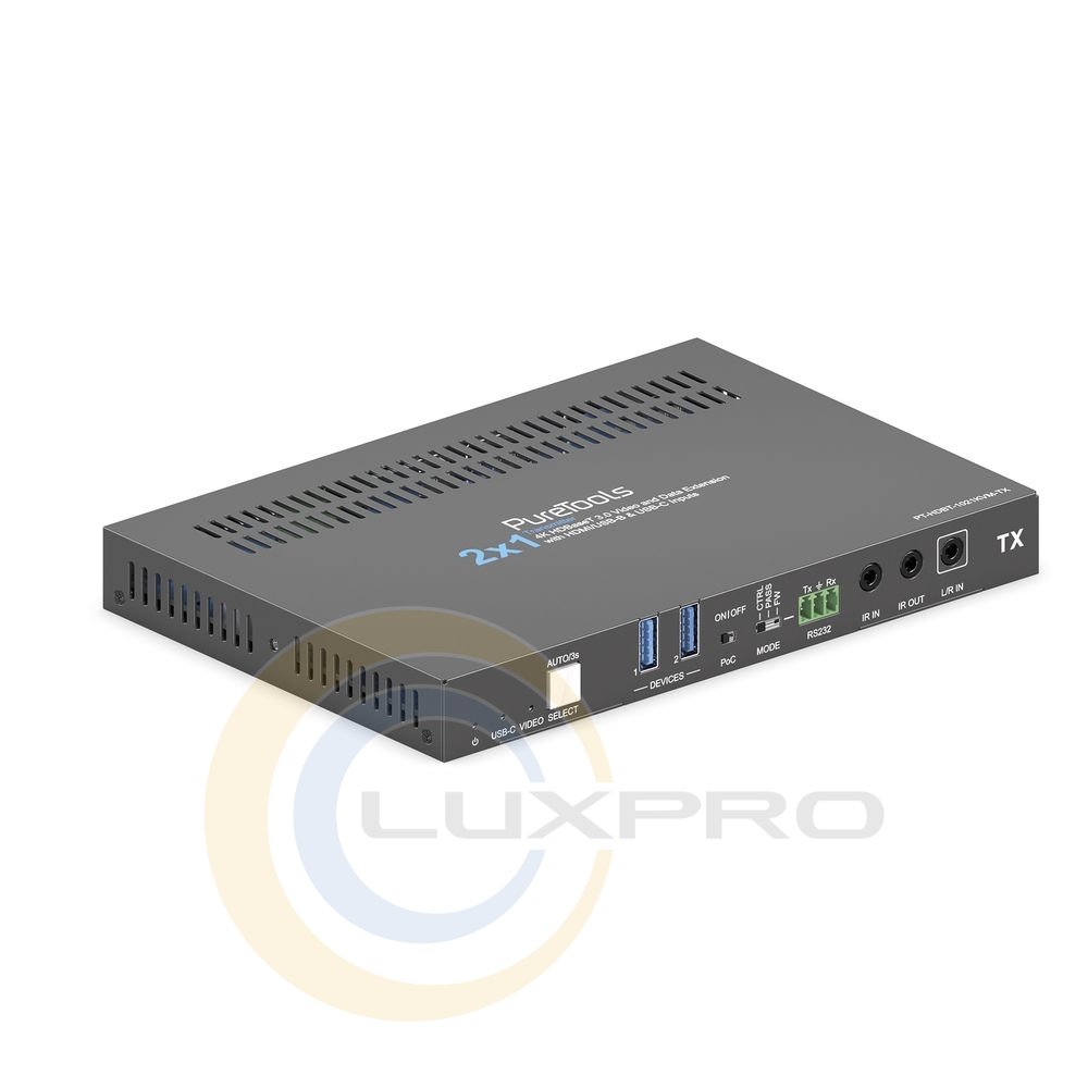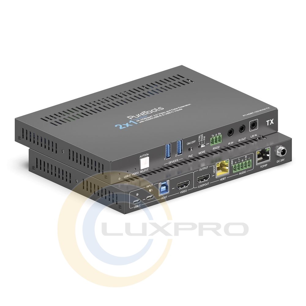 PureTools - 2x1 4K HDBaseT 3.0 KVM-передавач2x1 4K HDBaseT 3.0 KVM-передавач: високоякісне розширення відео та даних4K HDBaseT 3.0 KVM-передавач розроблений для забезпечення найвищої продуктивності та надійності у професійних AV-системах та IT-середовищах.Особливості:- Кристально чистий дисплей: Передача відео та даних на відстань до 40 і 70 м з роздільною здатністю 4K, гарантуючи бездоганну якість зображення та безперебійну передачу. Насолоджуйтесь яскравим зображенням завдяки підтримці HDMI 2.0 18 Гбіт/с для чудової якості перегляду.