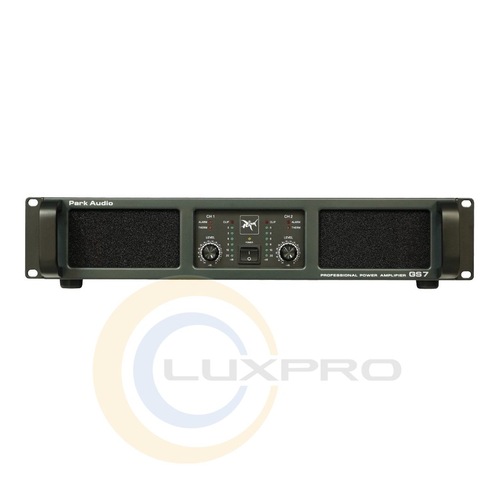 Підсилювач потужності GS7 MKII виконаний в міцному металевому корпусі висотою 2U, з легкознімними протипиловими фільтрами і примусовою системою охолодження з інтелектуальним регулюванням швидкості вентиляторів. Усередині підсилювача встановлено два незалежних імпульсних джерела живлення - по одному на кожен канал, що забезпечує стабільність і стійкість під час роботи на низькоомне навантаження. Вхідний каскад підсилювача побудовано з використанням високоякісних компонентів і оснащено каліброваними регуляторами ALPS, а також він має вимикаємий високочастотний фільтр (HPF) із трьома режимами: OFF, 35 Гц і 45 Гц.Завдяки підтримці режимів роботи МОНО, СТЕРЕО і МОСТ, підсилювач легко адаптується до різних конфігурацій аудіосистем. Він має високий демпфінг-фактор і низький рівень спотворень, а також надійну багатоступеневу систему захисту від КЗ, перегріву, перенапруги і ВЧ-сигналів. Вбудований оптоелектронний Clip-лімітер забезпечує якісний захист динаміків від перевантажень без спотворень звучання.Особливості:
