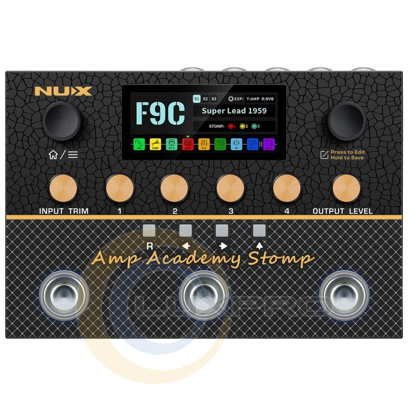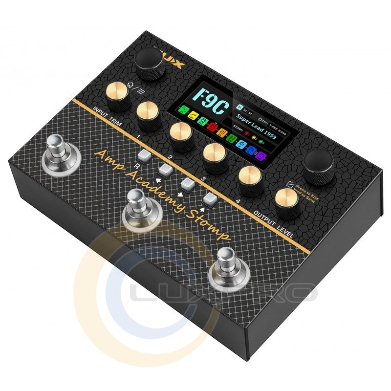 Гітарний процесор Amp Academy Stomp. В Amp Academy Stomp реалізована наша культова технологія моделювання підсилювачів TS/AC-4K (алгоритм фізичного моделювання «білої скриньки»), яка вдвічі складніша за попередні версії. Це спонукало нас розробити нову апаратну платформу з двома DSP-процесорами: один для обробки всіх ефектів, а інший для алгоритму моделювання підсилювача. Тепер ми навіть розділили моделювання підсилювачів на окремі функції підсилювача та підсилювача потужності. Це означає, що ви можете вибирати різні лампи для створення креативного звуку.