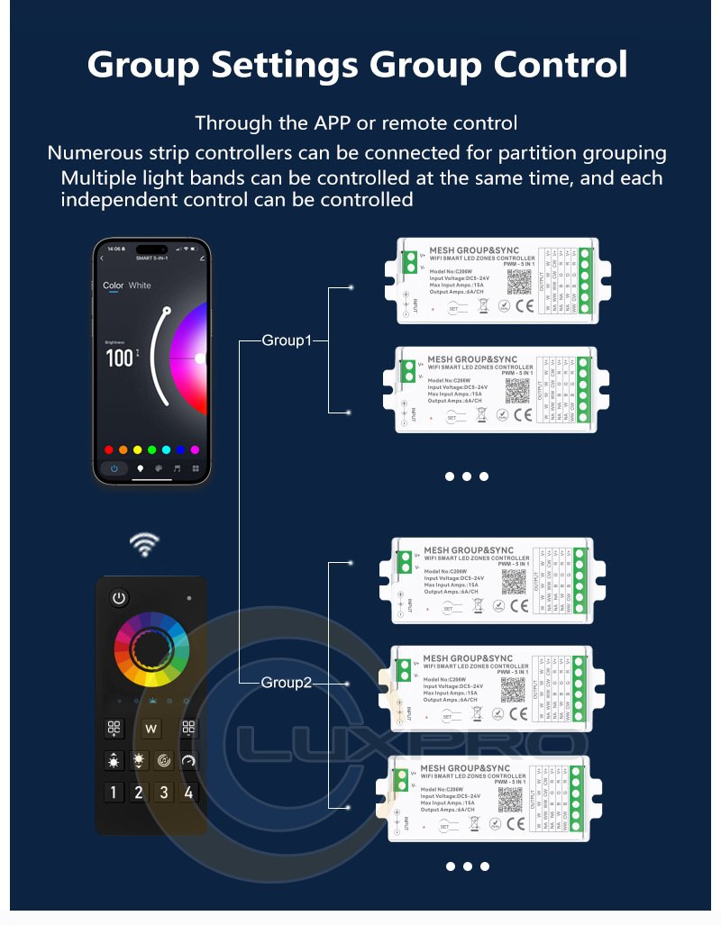 Основні функції Димер управління PROLUM 4-Zone; Wi-Fi; TUYA; 15A; 6A Канал Max;Series: HomeLink: