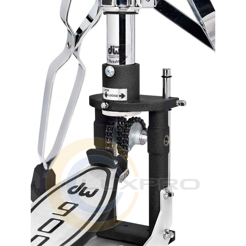 Стійка під хай-хет DWCP9500D. Складаний футборд залишається закріпленим до стійки у складеному стані (US Patent No. 5105706).