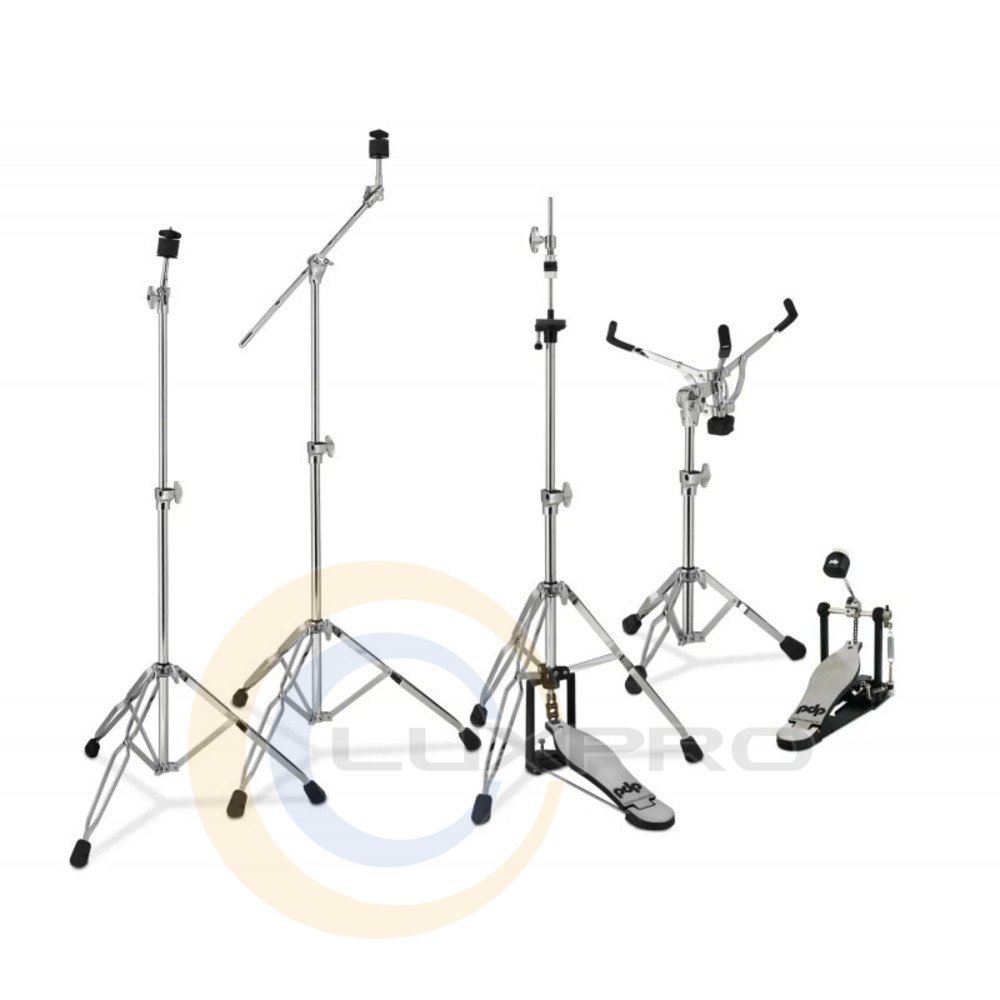 Набір стійок PDHW715. Ці універсальні стійки були розроблені компанією DW у Каліфорнії та мають регульоване положення Glide Tilter, ніжки з подвійними розтяжками та протиковзкі ніжки. У комплект також входить легка, обтічна педаль PDSP710. Одноланцюжковий концентричний привід у ретро-стилі зручний для гри, а подвійні стійки, сталева основа та сталевий приводний вал роблять цю педаль надійною та довговічною.