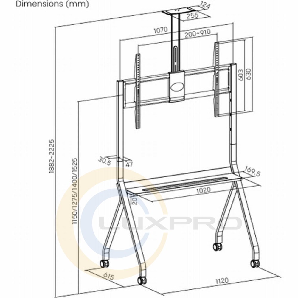 Презентаційна стійка для інтерактивної панелі сумісна з широким спектром кріплень VESA: від 200x200 до 900x600. Завдяки цьому її можна використовувати з більшістю сучасних дисплеїв та телевізорів. Високоякісне порошкове покриття гарантує стійкість до зносу та тривалий термін експлуатації. Це універсальне рішення для конференц-залів, класів, виставок або студій.
