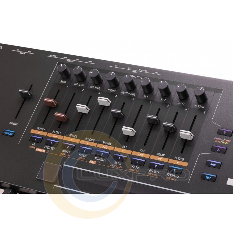 - Клавіатура: Fatar TP/9, 61-клавішна, напівзважена синтезаторного типу, чутлива до швидкості та натискання (після дотику), регульована чутливість (K2061);