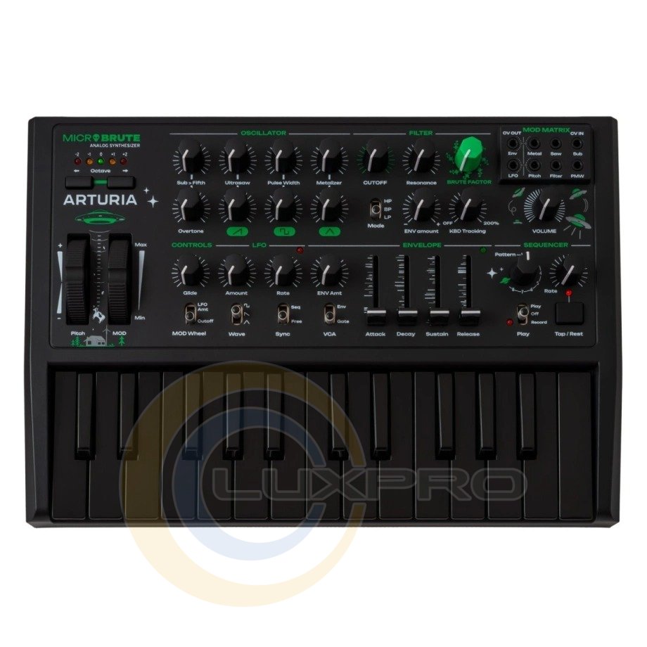 Синтезатор MicroBrute UFO Edition. Для музикантів і продюсерів, які шукають компактний і доступний аналоговий синтезатор з повноцінним ручним керуванням, MicroBrute – це справжня аналогова машина, яка перевершує свої габарити. 100% аналоговий тракт сигналу дарує тепле, сире звучання без цифрових генераторів і DSP. В основі один VCO з регуляторами Ultrasaw, Metalizer і Overtone, здатний створювати складні, багатошарові тембри.