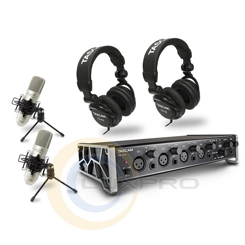Студійний комплект US-4x4TP - ідеальне рішення для невеликої студії звукозапису. Комплект включає в себе 4-канальний аудіоінтерфейс US-4x4, який оснащений 4 мікрофонними / лінійними входами XLR / TRS з фантомним живленням і попереднім підсилювачем Ultra-HDDA на кожному каналі. Пристрій підтримує запис і відтворення з параметрами 24 біт і 96 кГц. Комплект оснащений двома конденсаторними мікрофонами TM-80, які призначені для запису вокалу і акустичних інструментів. Мікрофони мають кардіоїдну діаграму спрямованості. Також в комплект входить пара закритих навушників TH-02, з повертаючимися чашечками. Навушники забезпечують чистий і збалансований звук, і володіють широким частотним діапазоном звукопередачі.