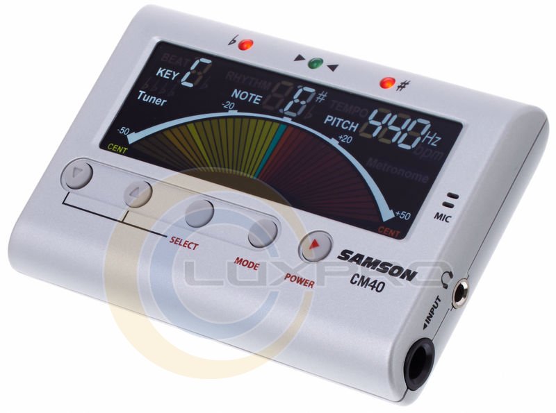 CM40, як хроматичний тюнер пропонує цілий ряд вражаючих особливостей, в тому числі два режими настройки: Tone (ручний) і Tuner (автоматичний). У режимі Tuner, тюнер автоматично розпізнає ноту, яку Ви граєте, а в режимі Tone дозволяє вибрати калібрувальний тон. Використовуйте вбудований мікрофон для налаштування акустичних інструментів і 1/4" jack вхідний роз'єм для електронних інструментів. Незалежно від того, який спосіб ви оберете, CM40 дозволяє широкий діапазон калібрування від 430 до 450 Гц, а його відображення параметрів в реальному часі забезпечує точну настройку. СM40 має функцію транспонування, яка дозволяє з легкістю налаштувати Ваш інструмент в більш низький лад.CM40 також може бути використаний в якості метронома. Ви зможете практикуватися з темпом від 30 до 250 ударів в хвилину використовуючи вбудований динамік тюнера (з регулюванням гучності) або 1/8-дюймовий роз'єм для навушників. В "Beat" режимі, ви маєте можливість вибирати з десяти різних інтервалів. Використовуючи функцію "Rhythm" ви можете вибрати з дев'яти ритмічних варіацій для занять в широкому діапазоні музичних стилів.Оснащений великим повнокольоровим РК-дисплеєм, а також світлодіодними сигналами висоти тону/ритму, CM40 ви зможете з легкістю використовувати в будь-якій обстановці, в тому числі на погано освітленій сцені. Він також має інтегровану висувну підставку для більш зручного перегляду.Крім цього, зручне автоматичне вимикання буде економити дві батареї ААА, якщо CM40 не використовується протягом п'яти хвилин.Характеристики: