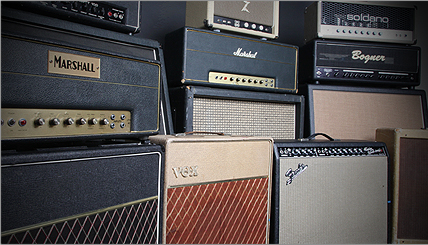 - 2002 Bogner® Uberschall (4x12 mixed Celestion® V30 and G12T75 speakers)