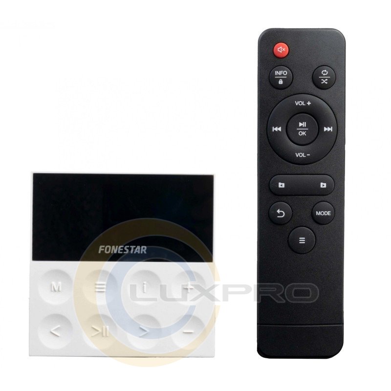 Трансляційний підсилювач KS-AMP. Підсилювач укомплектований рідкокристалічним дисплеєм інформації про режим та відтворення, розміром 2.15". Він дозволяє встановити максимально допустимий рівень гучності, окресливши межу, яка не може бути перевищена. Пристрій оснащений таймером переходу в режим енергозбереження, а також функцією еквалізації низьких та високих.KS-AMP сумісний зі стандартною універсальною квадратною або круглою монтажною коробкою та легко інтегрується в будь-який робочий простір. Управління здійснюється через сенсорну панель або пульт керування, що постачається в комплекті. Підсилювач призначений для роботи у складі невеликих звукових систем для залів очікування, компактних магазинів, приватних приміщень тощо.Особливості: