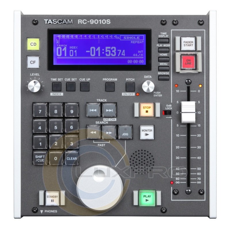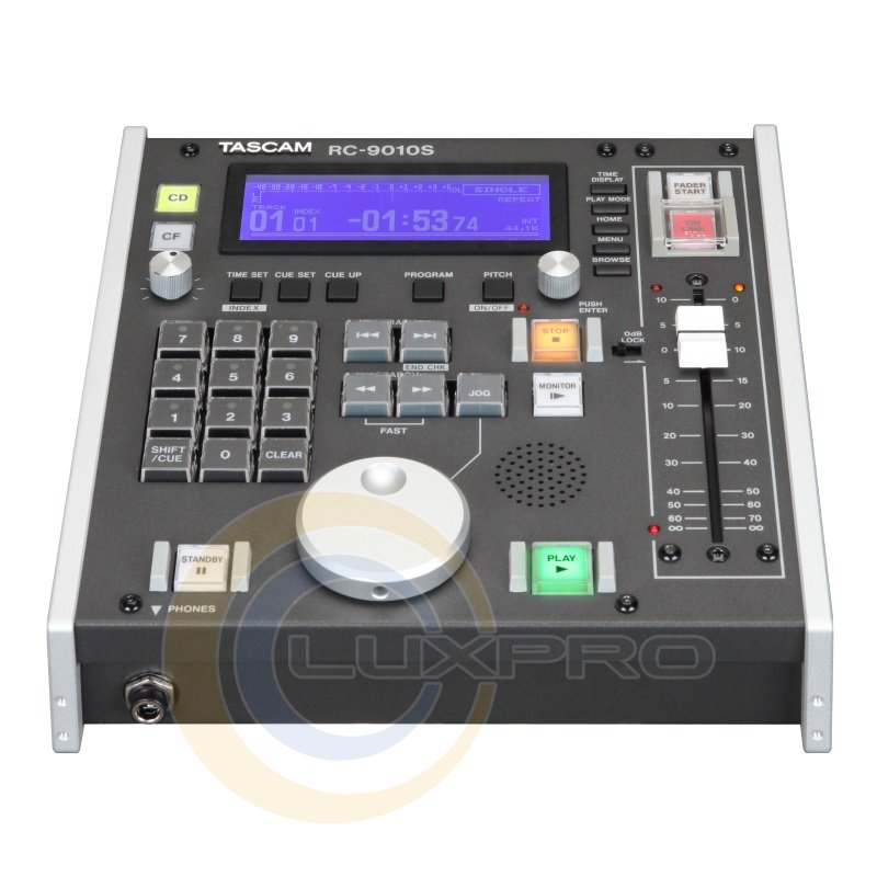 RC-9010S являє собою пульт дистанційного керування для програвачів TASCAM CD-9010 і CD-9010CF. Пристрій оснащений великим РК-дисплеєм, 100 мм фейдером з обмежувачем в положенні 0 дБ, поворотнм перемикачем, цифровою клавіатурою і функціональними кнопками. Всі елементи управління зроблені з високоміцних матеріалів, що гарантує довговічність даного пристрою. Також пристрій наділене вбудованими акустичними динаміками.