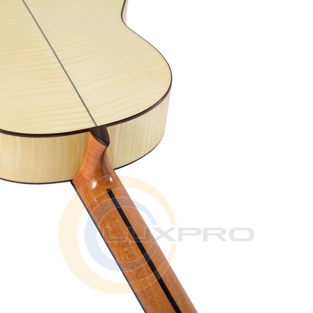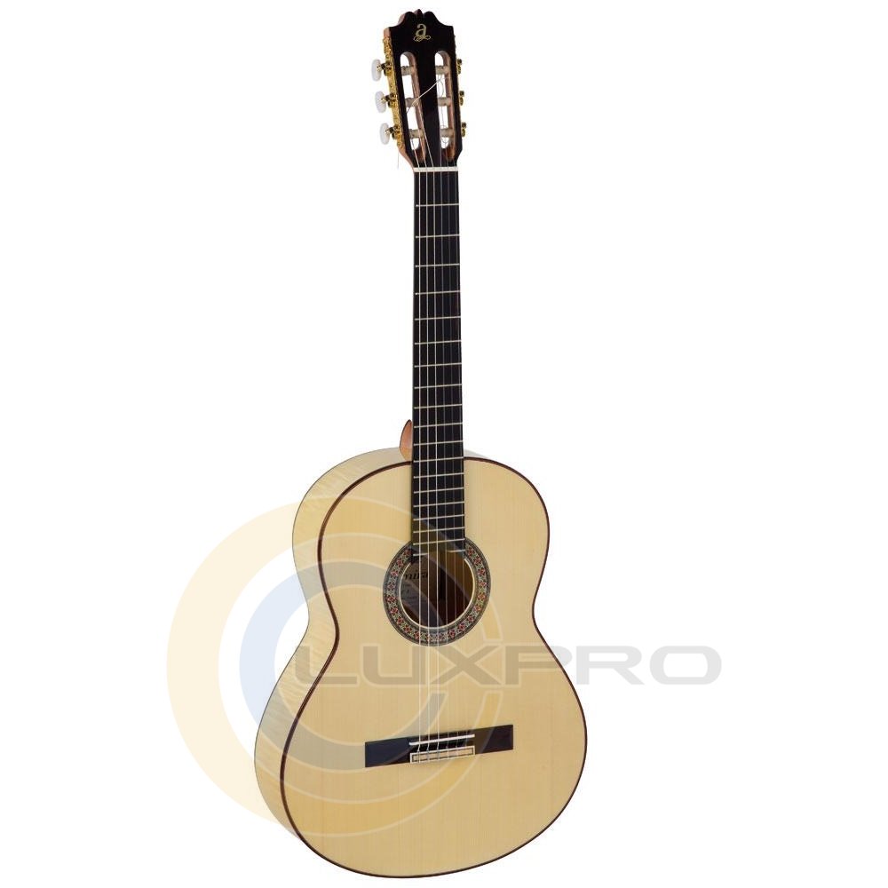 - Гітара ADMIRA F4- Верхня дека з цілісної ялини- Верхня дека Admira F4 виготовлена з цільної ялини. Ця порода дерева відрізняється малою вагою і забезпечує насичене звучання з хорошим відгуком. - Нижня дека і обичайка з хвилястого клена- Для виготовлення обечайки і нижньої деки F4 використовується хвилястий клен. Ця порода дерева не тільки забезпечує покращений відгук у верхньому регістрі, але також відрізняється неймовірно привабливим зовнішнім виглядом. - Захисна окантовка корпусу- Окантовка верхньої і нижньої деки виконана з дерева для витонченого гармонійного зовнішнього вигляду інструменту. - Посилений гриф- Гриф Admira F4 виготовлений з червоного дерева і посилений палісандровою вставкою для поліпшення стабільності і надійності. - Накладка грифа з чорного дерева- Чорне дерево відрізняється неймовірною міцністю і забезпечує поліпшений відгук у повернемо регістрі. - Технологія кріплення грифа Spansh Heel Нескёйнт- Кріплення грифа типу "Іспанська п'ята" (Spanish heel) вважається одним з найбільш технологічно просунутих. Воно значно складніше у виробництві ніж звичайний приклеєний гриф, але забезпечує відчутне поліпшення звучання і збільшує міцність інструменту. - Завдяки тому, що корпус гітари по суті збирається на п'яті грифа інструмент працює як єдина акустична конструкція і, в результаті, відрізняється посиленим резонансом і помітно збільшеним сустейном. - Fabricado en España- Класичні гітари Admira серії F зібрані вручну досвідченими фахівцями на фабриці Enrique Keller S.A. розташованої в північній частині Іспанії. - Характеристики:- верхня дека - цілісна ялина;