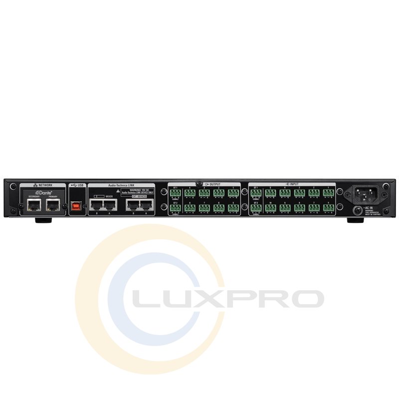 Суфікс "DAN" означає, що мікшер підтримує технологію Dante. Це стандарт для передачі високоякісного багатоканального аудіо через звичайну мережу Ethernet (мережевий кабель). Це дозволяє легко підключати його до інших Dante-сумісних пристроїв на великій відстані (наприклад, мережевих мікрофонів).Інтеграція.