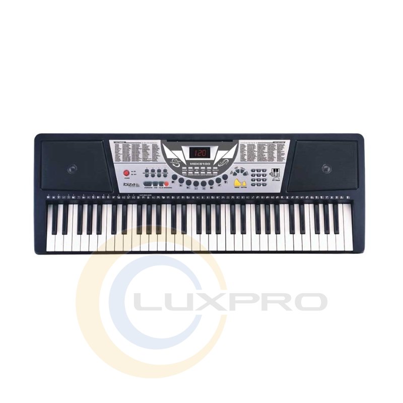 Синтезатор MEK6100 - це 61-клавішний інструмент з 100 тембрами, 100 ритмами і 8 ударними для широкого творчого простору. MEK6100 - це високоякісна клавіатура з розширеними функціями. Функція, призначена для навчання, дозволяє навіть недосвідченим гравцям швидко увійти в світ клавишников. З функцією запису ви можете вирізати і записувати вправи або навіть перші, більш короткі виступи. Крім того, цей спектр функцій доповнюється регульованими ефектами, такими як, наприклад, вібрато.