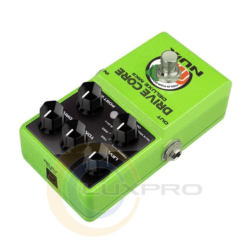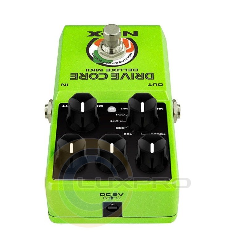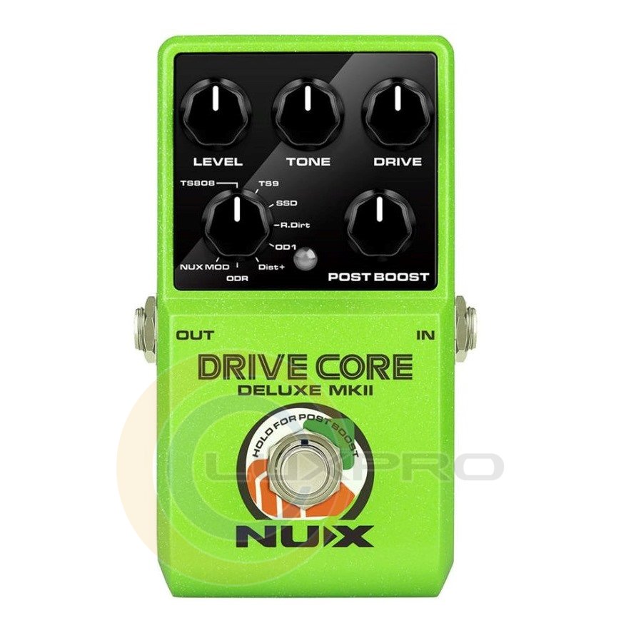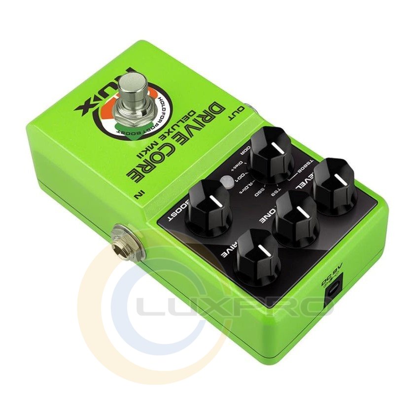 Педаль ефектів Drive Core Deluxe MKII. Утримуючи перемикач ножа, ви можете включити або вимкнути Post Boost, додаючи до 7 дБ посилення, що робить його ідеальним для соло без необхідності використання додаткової педалі посилення.