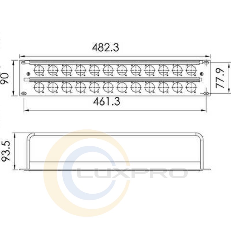 Рекова панель PLBR12N з 19-дюймовим штативом та монтажними отворами N.12 для роз'ємів XLR/SPEAKON (24 мм)