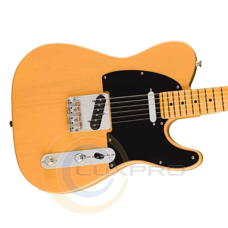 Електрогітара AMERICAN PROFESSIONAL CLASSIC TELECASTER BUTTERSCOTCH BLONDE. Корпус виконаний з вільхи – класичної деревини Fender, відомої своїм природним резонансом та збалансованим тоном з теплими середніми частотами та чіткими низами. Кленовий гриф з профілем Modern “C” забезпечує комфортне положення в руці та легкість гри, а кленова накладка з радіусом 9.5 дюйма та ладами Medium Jumbo додає швидкості та контролю як при акордовій грі, так і при сольних партіях.