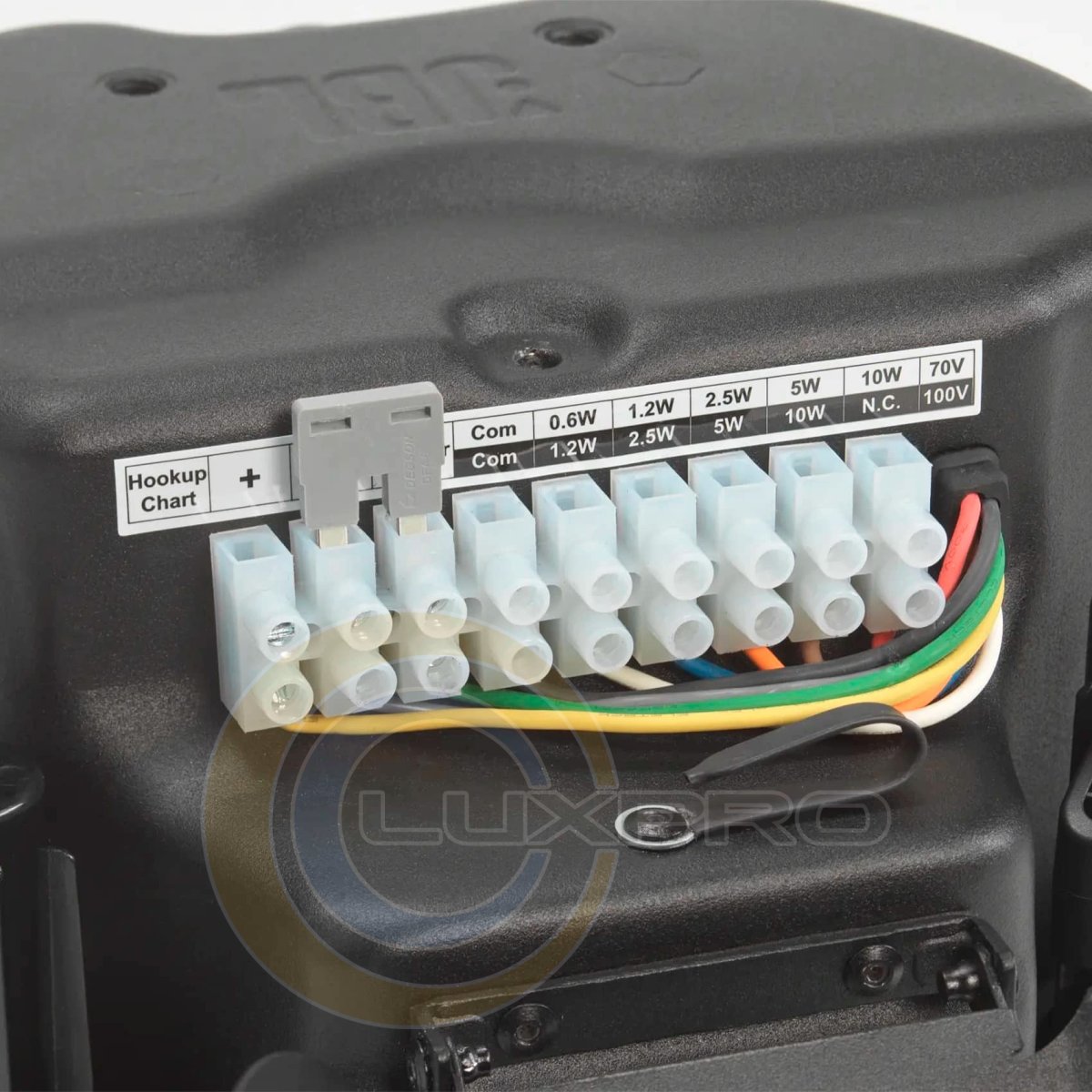 - Вхідні роз'єми: 9-контактні захищені ґвинтові клеми, сертифіковані за UL та VDE. Перемичка (встановлена за замовчуванням) для роботи у складі трансляційних систем. Кришка клем на шарнірі з одним фіксованим ґвинтом (без окремих деталей);