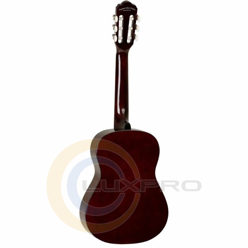 Корпус з липи формує тепле, округле звучання, приємне для слуху та придатне для акуратного акомпанементу. Гриф із махагону з накладкою Techwood забезпечує комфорт у руках та стабільність протягом занять. Класичні колки з білими кнопками додають традиційний зовнішній вигляд, а нейлонові струни роблять гру м'якою та зручною для новачків.