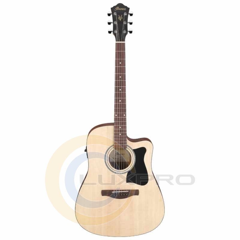Електроакустична гітара V40CE-OPN. Накладка грифа з дерева нанду забезпечує насичений і теплий тон, який надає інструменту особливої виразності. Верхній лист з ялини залишається популярним вибором для акустичних гітар завдяки своїй первозданній тональній чистоті, що допомагає розкрити повний спектр звучання.