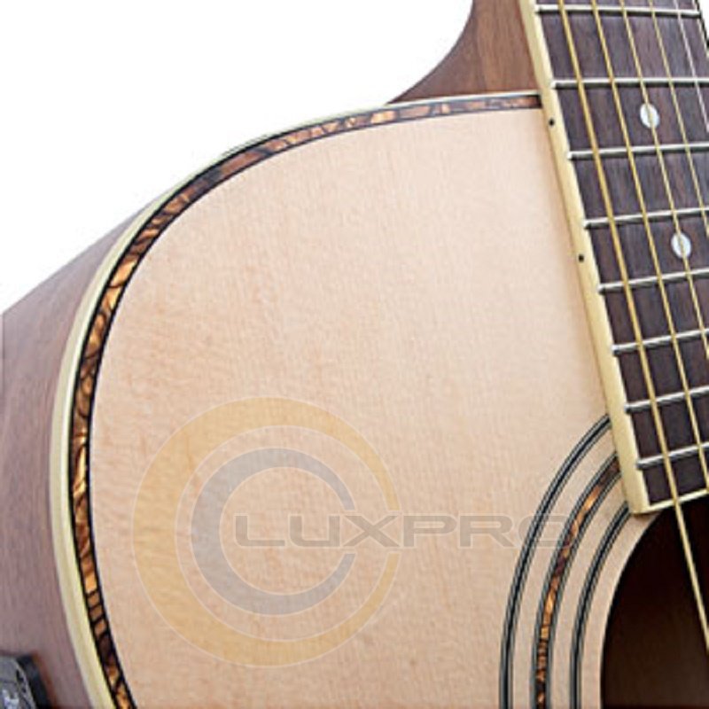 Ялина відрізняється чудовим поєднанням гнучкості та міцності, завдяки чому є одним з найпопулярніших матеріалів для виготовлення верхньої деки акустичних гітар. Чудові тональні характеристики роблять ялина ідеальним вибором для безлічі музичних жанрів і стилів гри.Нижня дека і обичайка з червоного дерева