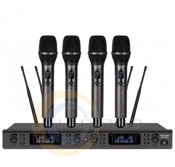 DV audio MGX-444H - це надійна двоканальна UHF-радіосистема, розроблена для використання в караоке-закладах, конференц-залах, на невеликих сценах тощо.