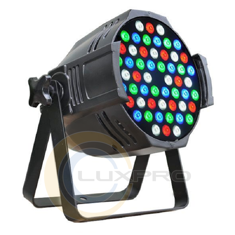 LED прожектор STLS Par S-54005 RGBW виготовлено із міцного алюмінієвого корпусу, який є надійним захистом для внутрішніх елементів пристрою від зовнішніх пошкоджень.За рахунок того, що прожектор оснащено 54 світлодіодами по 0,5 Вт, створюється яскраве та гармонійне світлове обрамлення приміщення, сцени, залу. Світлодіоди використані в даній моделі поділяються на червоні, яких 12 штук, зелені та сині, яких по 18 штук та 6 білих світлодіоди.Прожектор легкий в установці та використанні. Для полегшення його управління, виробник наділив пристрій такими вариантами управління: звукова активація. автоматичний режим, DMX (для даного режиму в прожектор вбудовано 8 каналів) і режим master/slave.Характеристики: