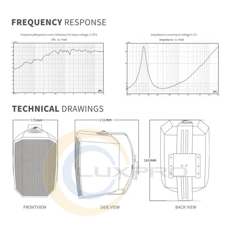 Настінна акустична система F-LHY5QW - настінна пасивна колонка для професійного озвучування приміщень і систем трансляції. Модель поєднує компактний розмір, достатню потужність та захист від вологи, що робить її універсальним рішенням для фонового звуку, мовних повідомлень і оповіщень в комерційних та громадських просторах.