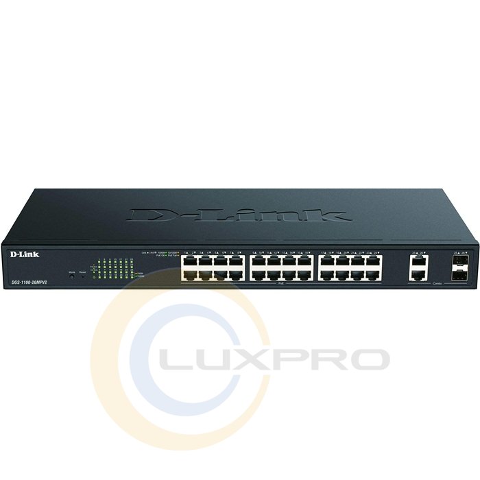 Комутатор DGS-1100-26MPV2 24xGE PoE, 2xSFP/GE, 370Вт, EasySmart