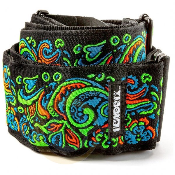 Колекція ременів Jimi Hendrix Blacklight створена як стильна та натхненна данина тим легендарним дням. Ремені лімітованого випуску виготовлені з міцної жакардової тканини, що світиться під ультрафіолетом, надаючи вашому сценічному образу яскравого та неповторного вигляду. Шкіряні наконечники забезпечують надійну фіксацію, а зручне регулювання довжини дозволяє адаптувати ремінь для будь-якого стилю гри.
