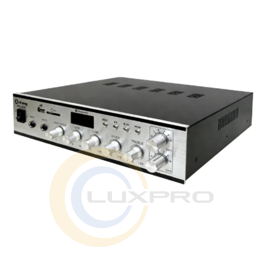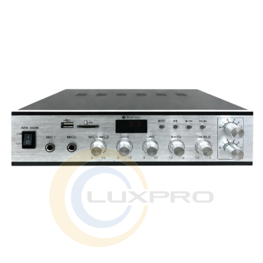 Підсилювач потужності USB-80. Пристрій поєднує функції мікшерного підсилювача і медіаплеєра: підтримує відтворення з SD-карт і USB-накопичувачів у форматі MP3, має вбудований Bluetooth-приймач і зручне керування з пульта ДК. Дві незалежні зони дозволяють розділяти звук по приміщеннях, а наявність двох мікрофонних входів робить підсилювач придатним для оголошень, конференцій та трансляцій у реальному часі.