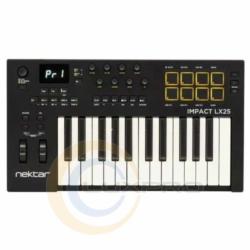 MIDI-клавіатура Impact LX25 mk3'. Вона оснащена 25 повнорозмірними клавішами з динамічною чутливістю, що дозволяє передати найдрібніші нюанси гри. Завдяки цьому інструмент підходить як для створення мелодій у студії, так і для живих виступів.